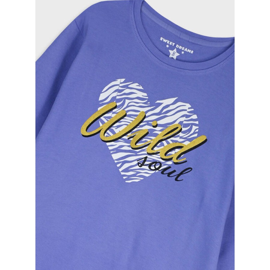 Πυζάμα με τύπωμα και εμπριμέ παντελόνι για κορίτσι