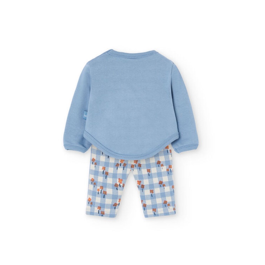 Σετ βρεφικό με μπλουζάκι φούτερ σε γαλάζιο χρώμα με σχέδιο και κολάν εμπριμέ.