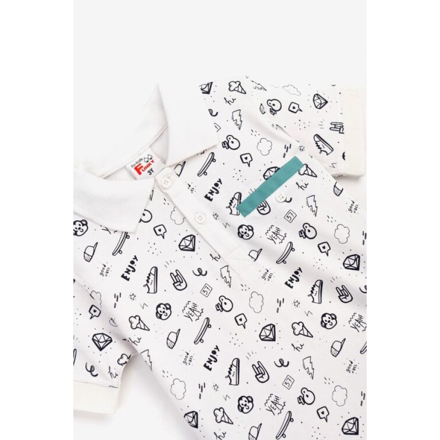 Μπλούζα αγόρι πόλο σε χρώμα λευκό με σχέδια