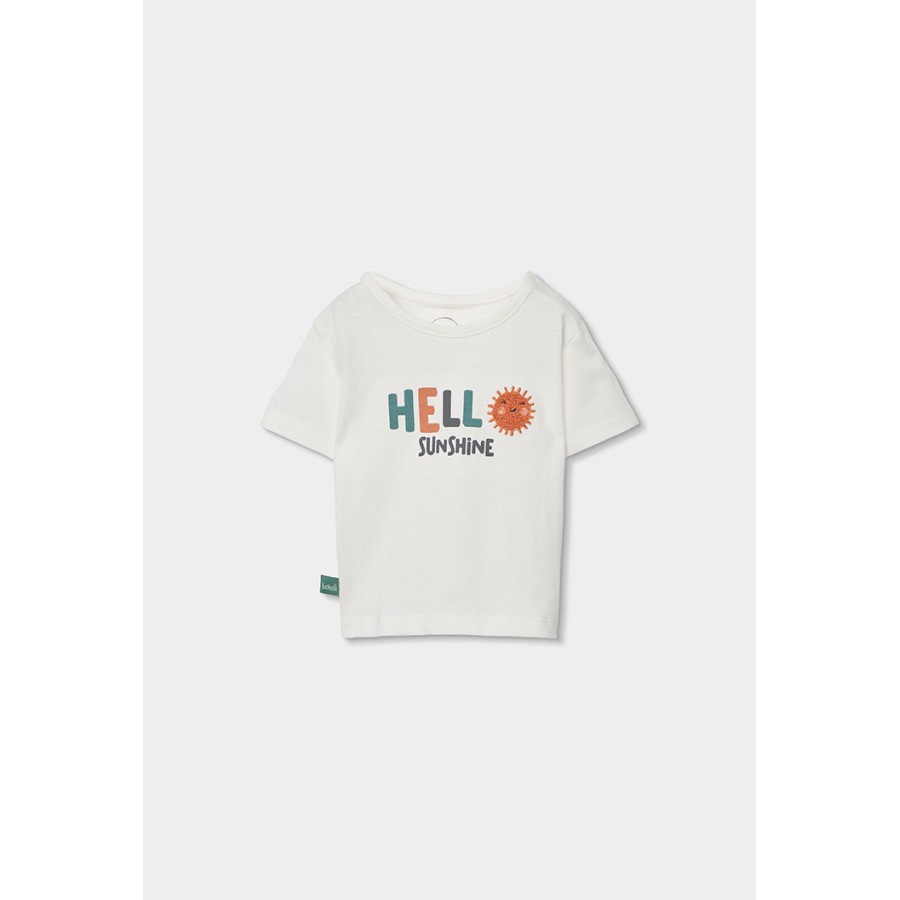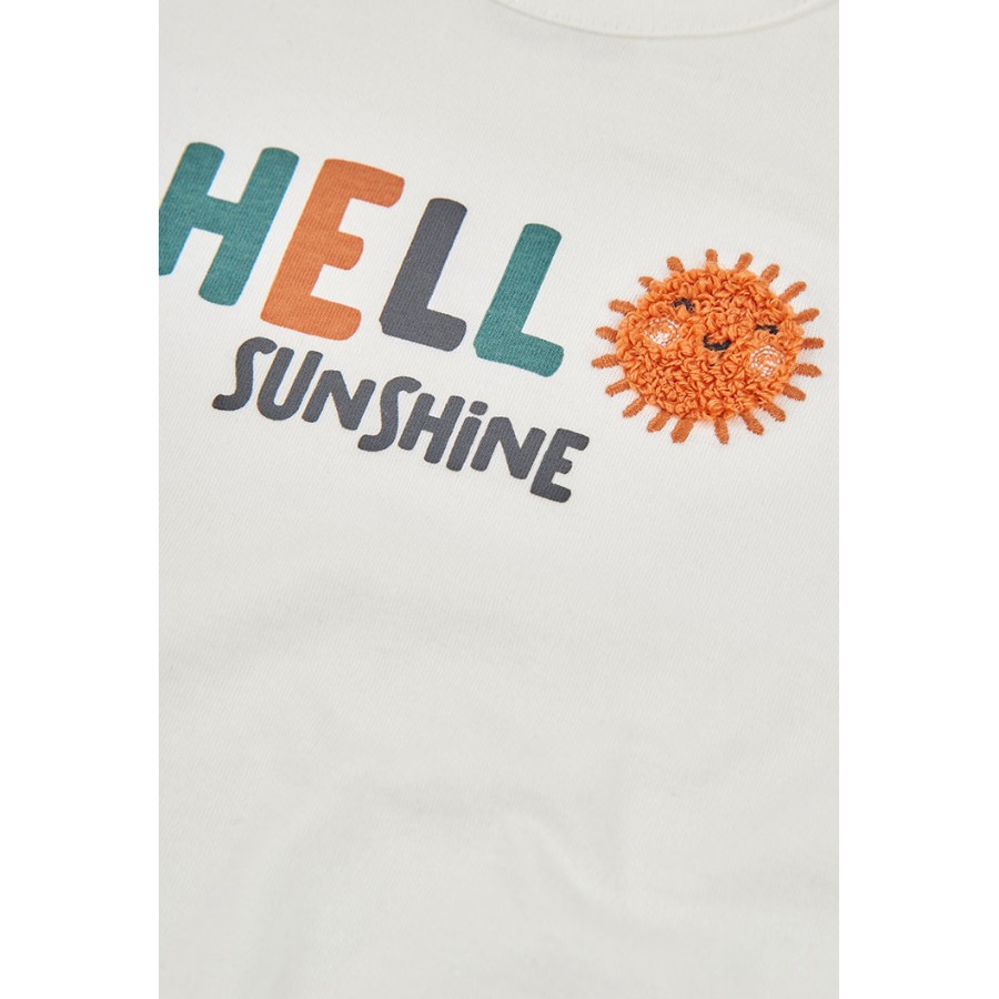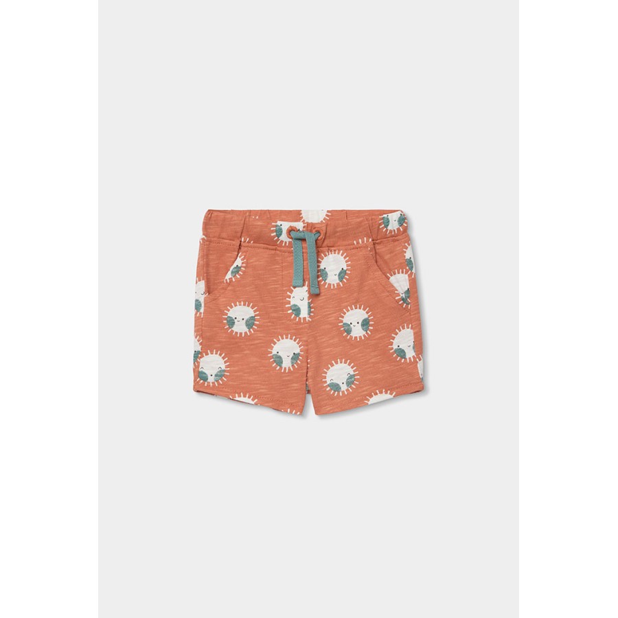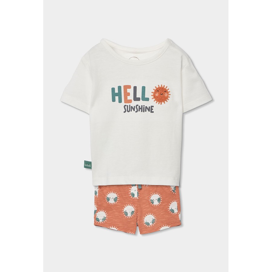 Σετ βρεφικό αγόρι μπλούζα λευκή και σορτσάκι πορτοκαλί με σχέδιο.