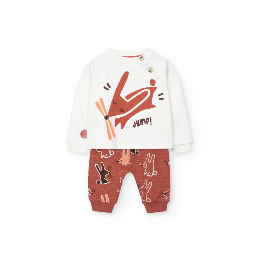 Σετ βρεφικό αγόρι με μπλούζα με σχέδιο σκιουράκι σε εκρού χρώμα