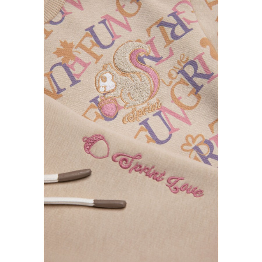 τύπωμα allover γράμματα και κέντημα εμπρός με μπουκλέ υφή.