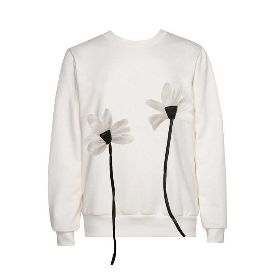 με μπλούζα σε χρώμα λευκό με σχέδιο λουλούδι