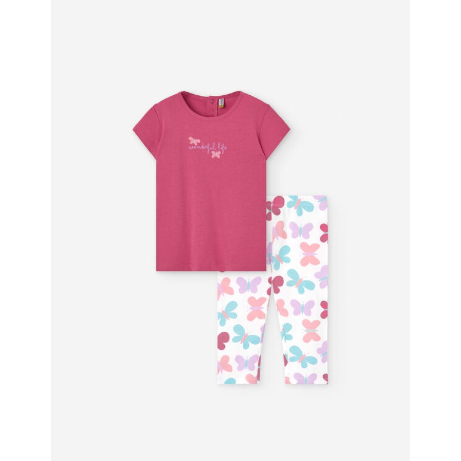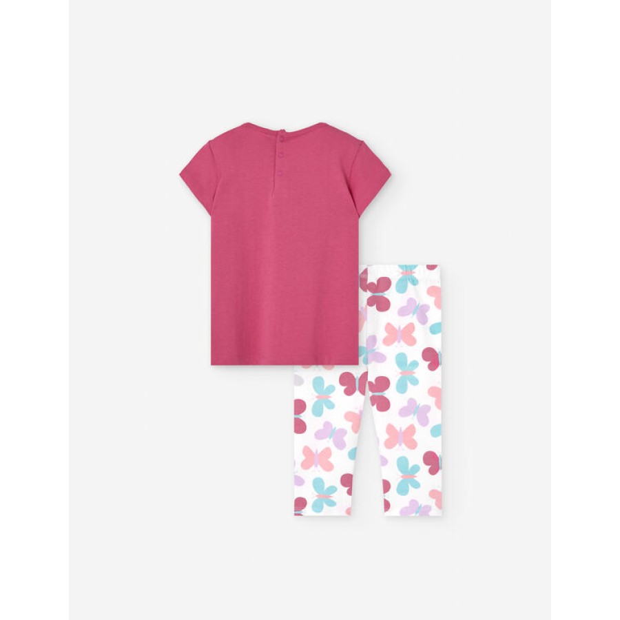 με μπλούζα κοντομάνικη σε χρώμα φούξια και κολάν με πεταλούδες