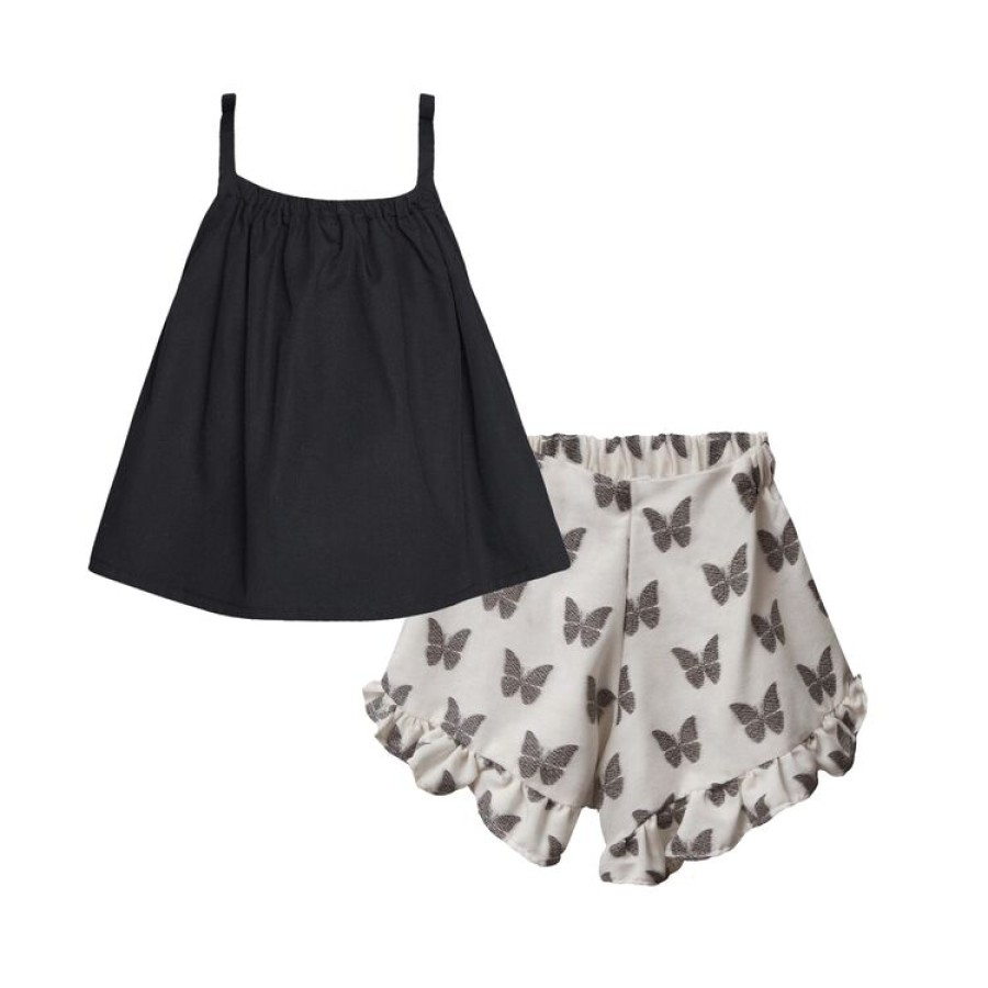 Σετ για κορίτσι με τοπάκι σε μαύρο χρώμα και σορτς ασπρόμαυρο με σχέδιο πεταλούδες