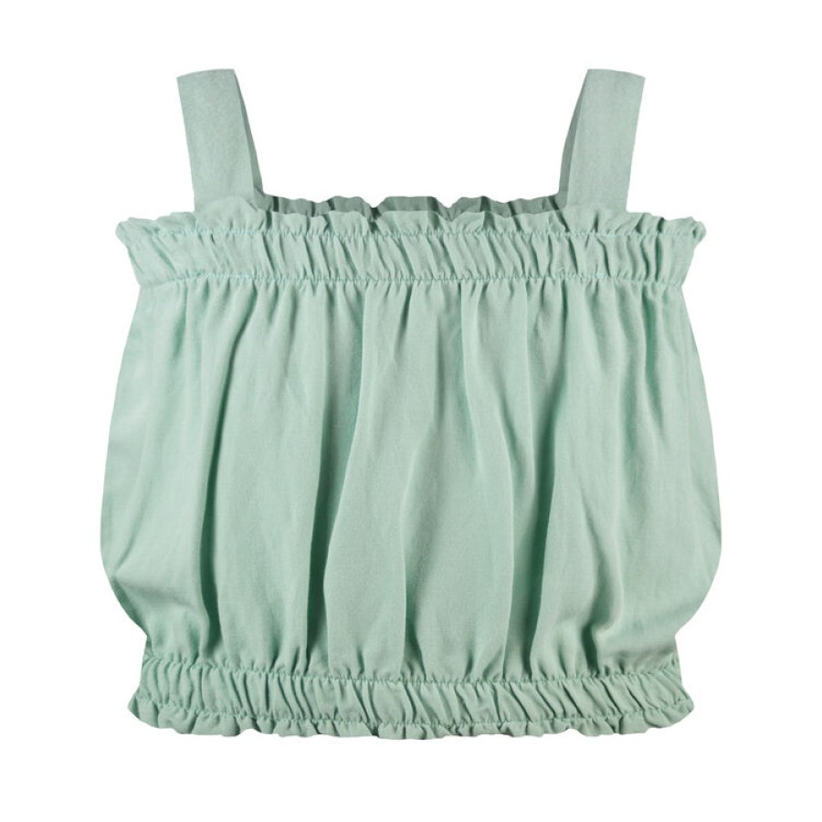 Βισκόζ μονόχρωμο τοπ με ελαστικό ζωναράκι στο κάτω μέρος και βολάν επάνω